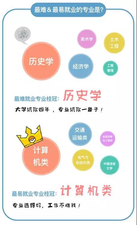 从专业来看,在求职难人群中,又以历史学、经济学、土木工程、美术学以及工商管理这五大专业的人群居多。而比较容易就业的专业前五位则为计算机类、交通运输类、电气与自动化类、中国语言文学以及食品科学与工程类。